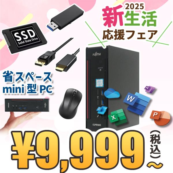 【新生活応援・2025】富士通 ESPRIMO Q556/第6世代 Core i3/メモリ:4GB/SSD:128GB/WI-FI/Win11/省スペース デスクトップ/DP/DVI/Office 2021 中古 パソコン
