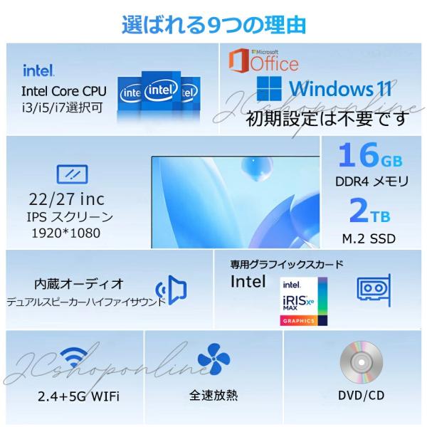 最安 デスクトップ 新品 一体型PC 一体型パソコン 24〜27インチ CPUインテル Core i7 i5 第12世代可 新Office2024 メモリ8GB SSD256GB 512GB ビジネスオフィス