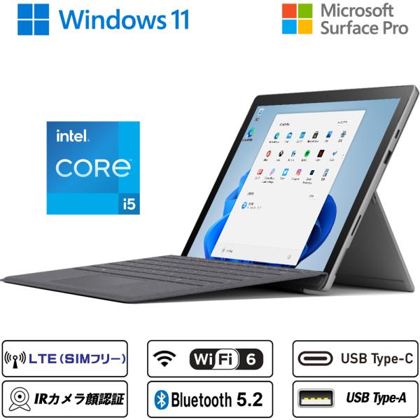 Microsoft Surface Pro 7+ (1961) 12.3型 第11世代Core i5-1135G7 SSD128GB メモリ8GB LTE対応SIMフリー Wi-Fi6 顔認証 Office キーボード付き Windows11