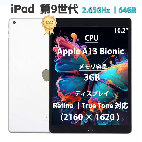 Apple iPad タブレットパソコン 中古 タブレットPC 10.2型 第9世代 メモリ3GB ストレージ64GB アップル 整備済み 初期設定済み 安い 美品 アイパッド A13 Bionic