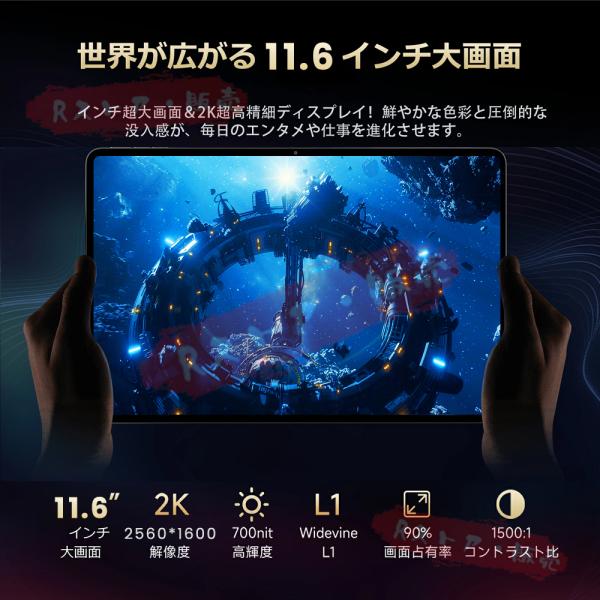 ※異なるレンズでタブレットの実物を撮影する際、さまざまな程度の透視歪みが発生する可能性があります。この歪みにより、タブレットの枠が写真上で実際よりも狭く見える場合があります。ただし、タブレット本体には枠が存在しており、枠のサイズは実物を基準としますので、ご了承ください。