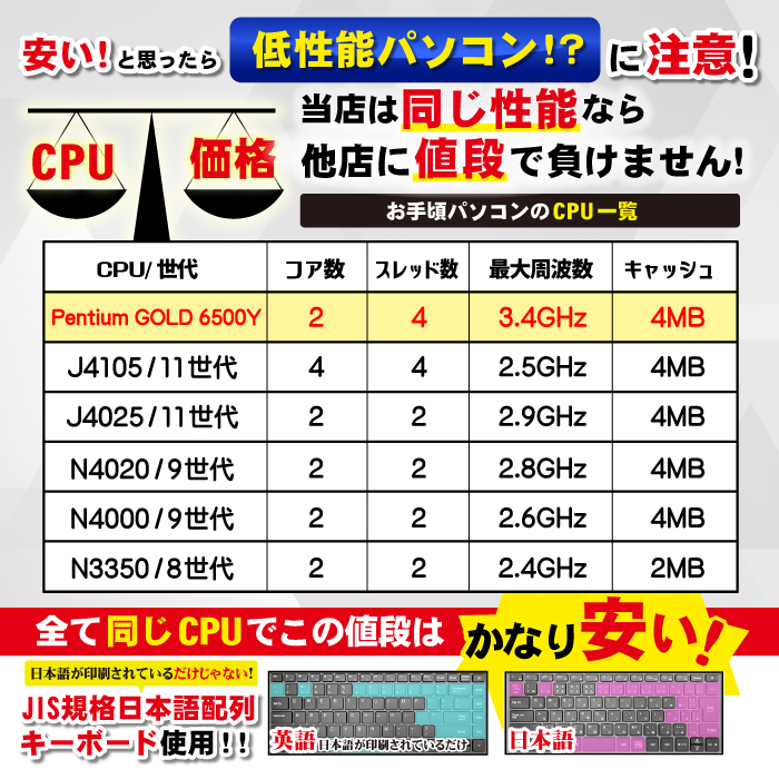 安価なノートパソコンに希少なJIS規格日本語配列キーボードです。
