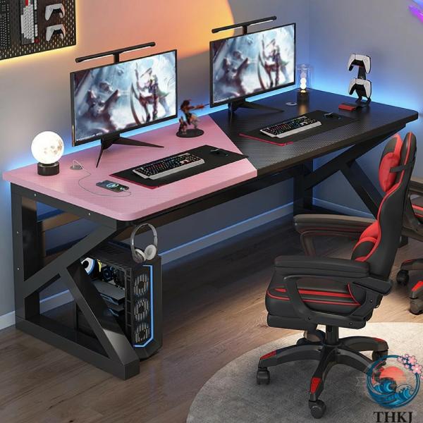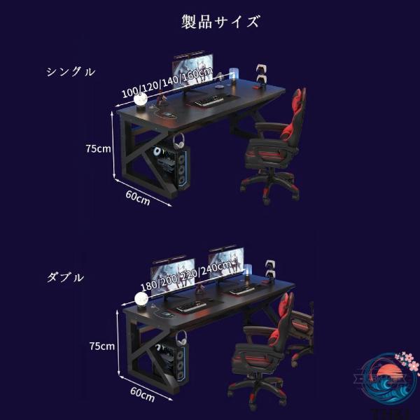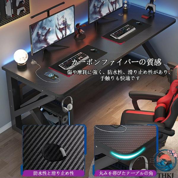ゲーミングデスク 2人用 パソコンテーブル 炭素繊維天板 ダブルコンピューターデスク 配線穴付き K型脚構造設計 幅100/120/140/160/180cm PCデスク 作業机 組立