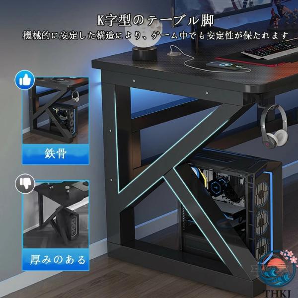 ? 【安定した構造】:ゲーミングデスクのカーボンスチール脚はK字型デザインで優れた安定性を発揮します。さらに、デュアルビームがデスクの揺れを防ぎ、非常に安定したゲーミングスペースを実現します。