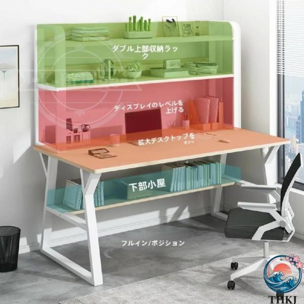 机 pcデスク ゲーミングデスク 勉強机 4段 収納スペース付き デスク 棚付き パソコンデスク T型テーブル脚 オフィス